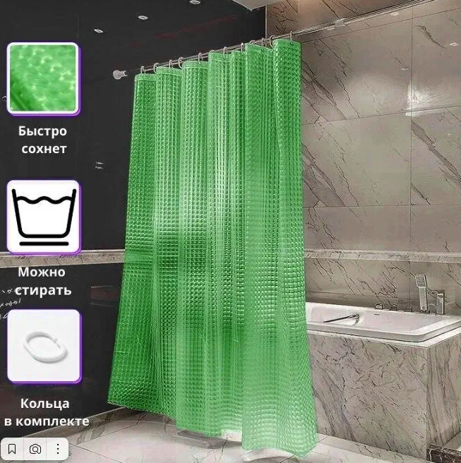 Шторка для ванны Frap 180x200 F8753, зеленая, 3D эффект объема