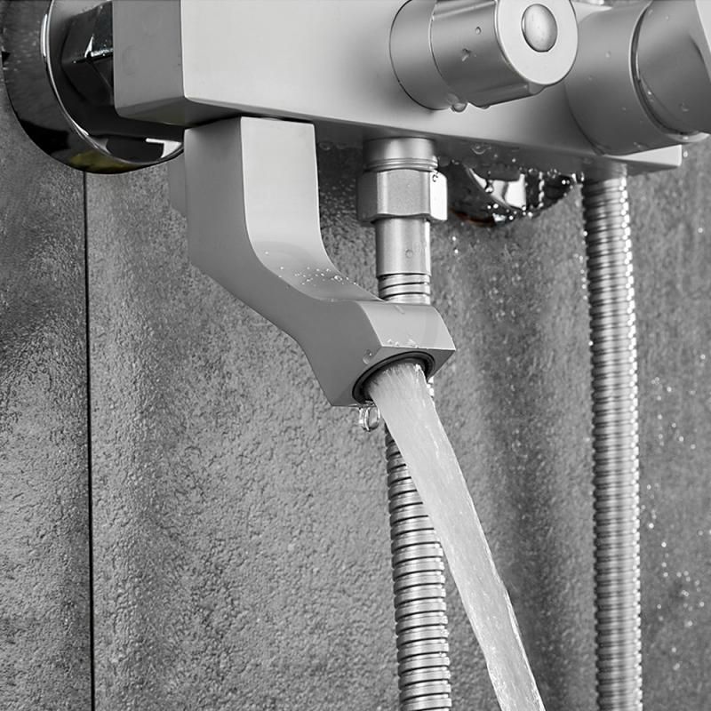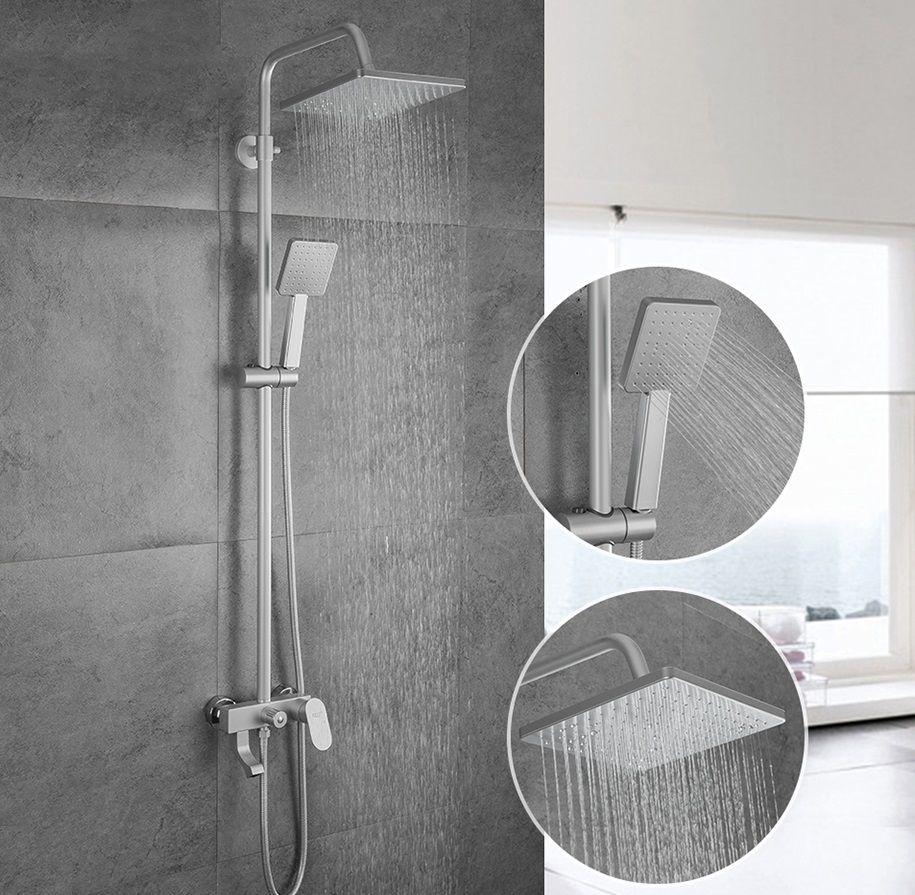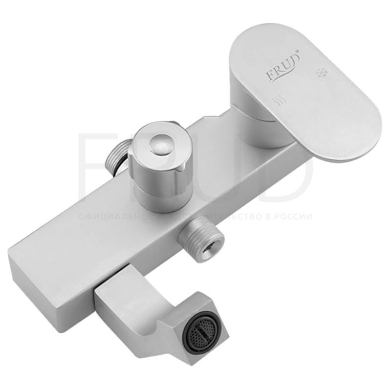 Душевая система Frud R24001 компактная и не занимает много места. В системе есть поворотный излив, тропический и ручной душ. Для переключения между всеми тремя режимами, есть специальный поворотный механизм на корпусе. Ручная лейка квадратная однорежимная, длина шланга составляет 1.5 метра. Для более удобного и универсального подключения в комплекте идут эксцентрики. Штанга подвижная и высота ее регулируется. Материал изготовления нержавеющая сталь. Металл не ржавеет, устойчив к постоянному воздействию воды. Душевая система окрашена порошковой краской в серебристый цвет.